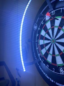 Firstly, consider the position of your dartboard. Is it near a window? Natural light is a good thing, but it changes with the time of day, creating inconsistencies. For this reason, having a dedicated lighting solution like a dart light surround is a smart move.